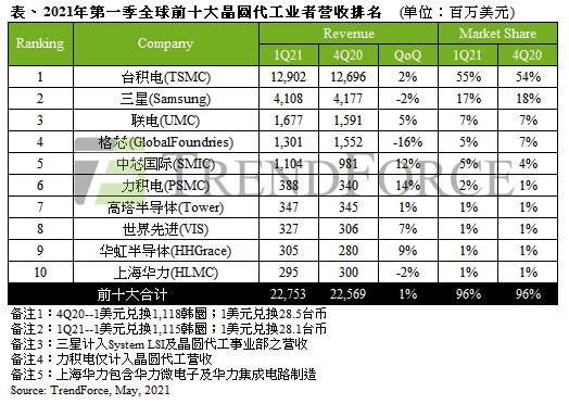 市场上,包括苹果、AMD在内的大客户几乎将全部产品委托台积电代工,而之前选择和三星合作的高通,则因为三星工艺制程不够成熟,在旗舰芯片高通骁龙888上出现“翻车”。