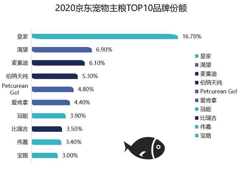 而以京东6.18的数据来看宠物主粮市场中top 10品牌份额总量为57.8%,其中进口主粮占了42.9%可谓是真霸权。国产品牌在top10品牌中仅占有3席,无论从市占率还是从行业认可度角度来谈国产宠物粮食都有些不尽人意。