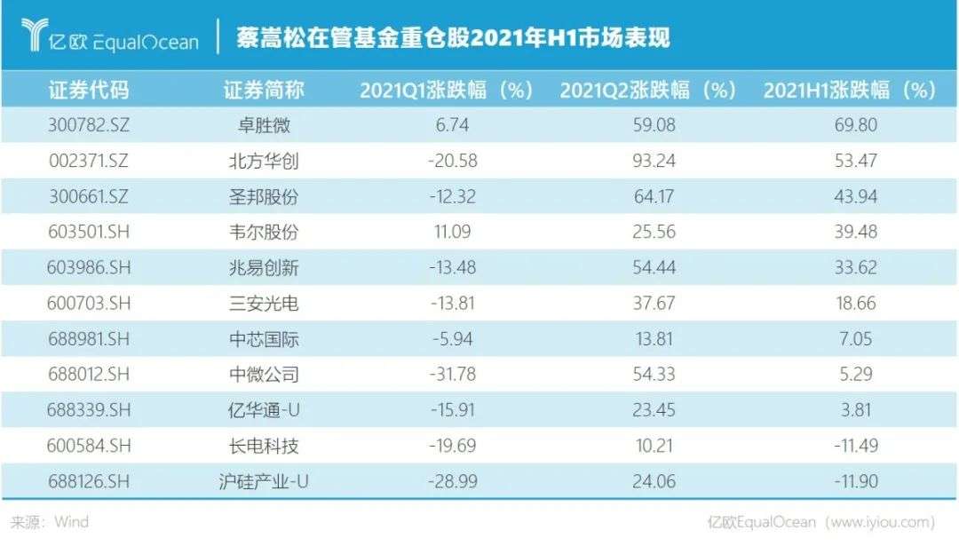不过,受益于芯片半导体板块的股价涨势,蔡嵩松旗下两只基金今年二季度表现让人惊喜。