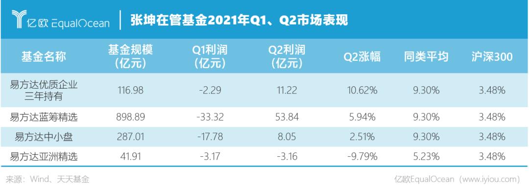 其中,张坤旗下代表作易方达中小盘二季度利润为8.05亿元,涨幅仅为2.51%,远低于同类平均数值9.30%。另一只热门基金易方达蓝筹精选二季度利润53.84亿元,涨幅仅为5.94%。
