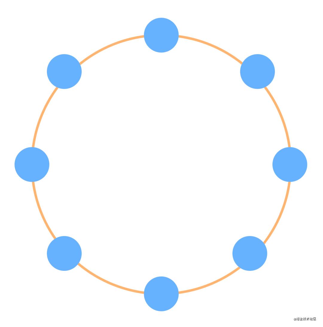 环型结构由网络中若干节点通过点到点的链路首尾相连形成一个闭合的环,这种结构通过公共传输链路组成环型连接,数据在环路中沿着一个方向在各个节点间传输,信息从一个节点传到另一个节点。