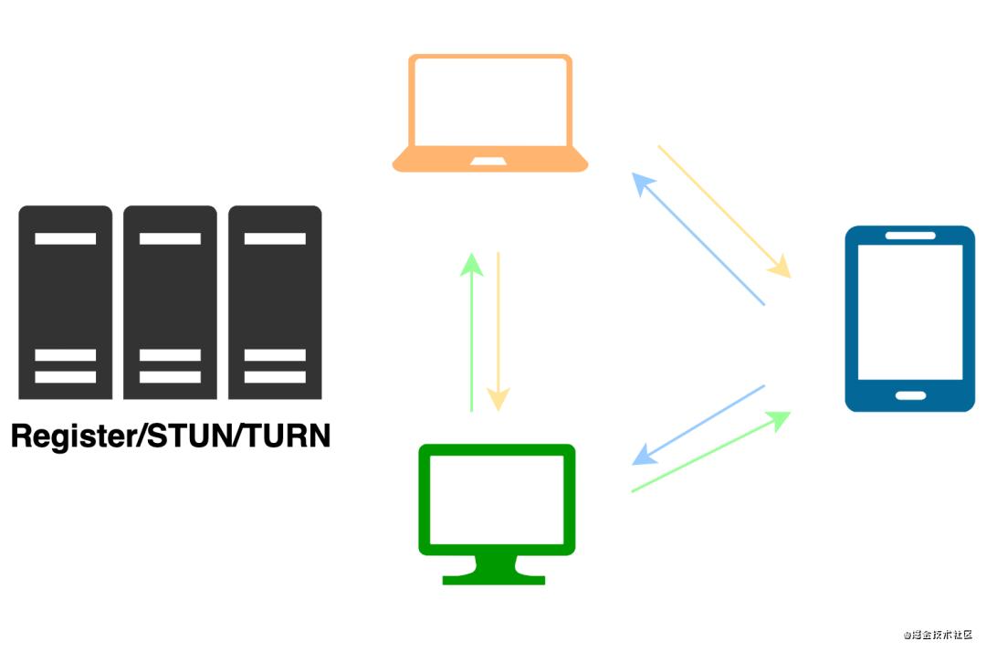 直连,也叫对等网络(P2P)。这种结构中,每个客户端在启动的时候,都需要注册到注册服务器,便于其他人能找到自己,正常情况下,在建立音视频通讯的时候不需要媒体服务器的介入,每个客户端相互连接,直接进行音视频通讯。但当一个或多个客户端在 NAT 之后(甚至多层NAT之后)时,直连会变得比较困难,有时候甚至无法联通。这个时候需要通过 STUN 进行“打洞”来穿越 NAT 进行通讯,如果“打洞”失败,还需要引入服务器中继才能通讯。具体的NAT打洞,或服务中继的细节可以参考拍乐云的系列文章《穿越防火墙的奥秘:ICE协议详解》