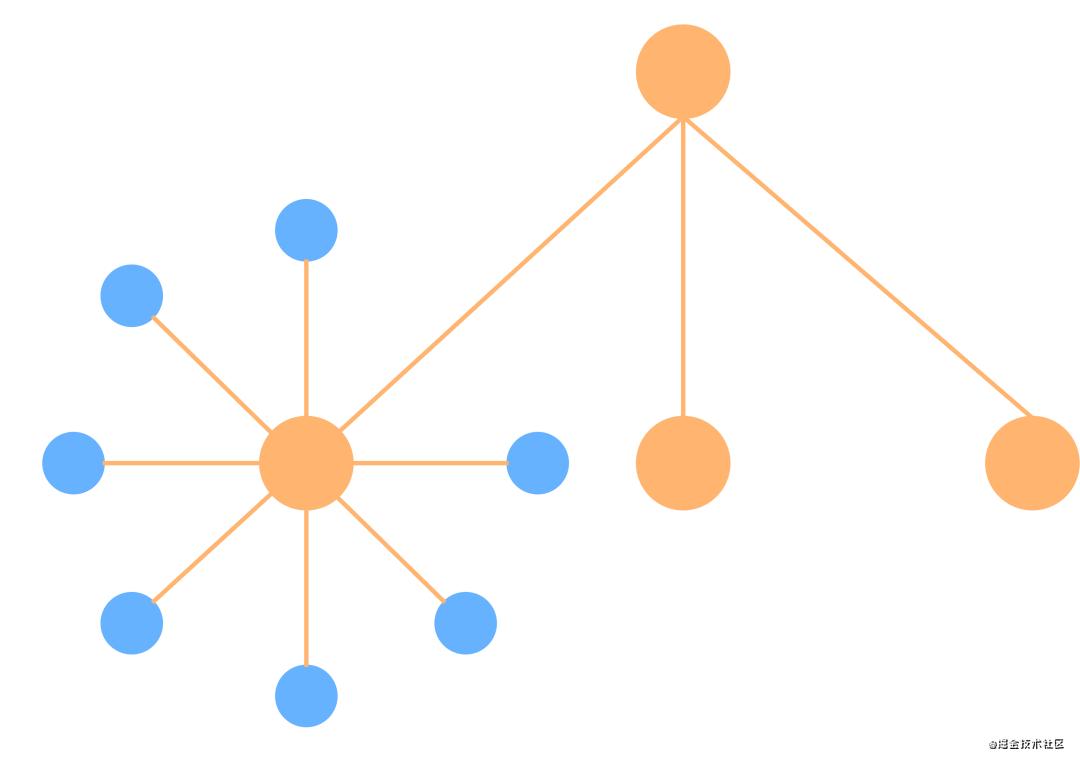 树形拓扑结构形状像一棵倒置的树,顶端是树根,树根向下分支,每个分支还可再向下分支,树根接收各站点发送的数据,然后再广播发送到全网。好扩展,容易诊断错误,根节点是瓶颈。在音视频服务架构中,当需要大规模扩展并发用户的时候,一般都会采取部署多个边缘计算控制节点,并通过树型方式连接到中心DC。通过这样方式接入的用户,延迟会略有增加。