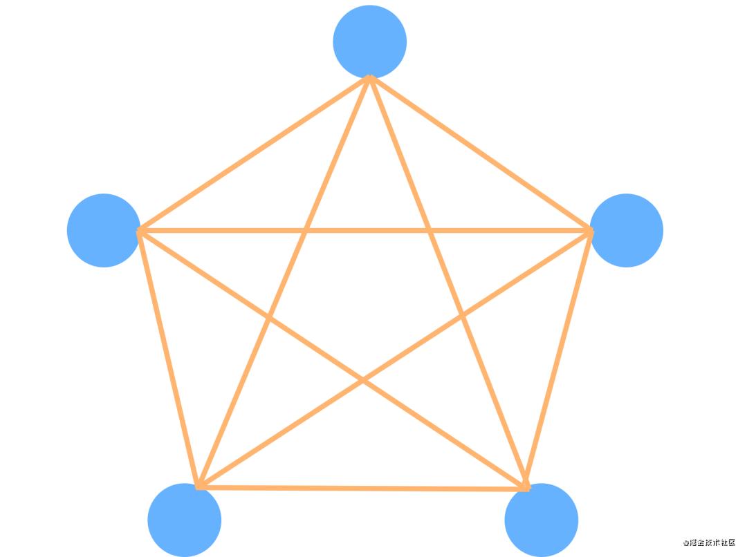 在网状拓扑结构中,网络的每台设备之间均有点到点的链路连接,网状拓扑结构是应用最广泛的。它的优点是没有中心节点,可靠性高,容错能力强,延迟低,但结构复杂,因有多条传输路径,选路和流量控制比较复杂,消息的时序一致性无法保证。