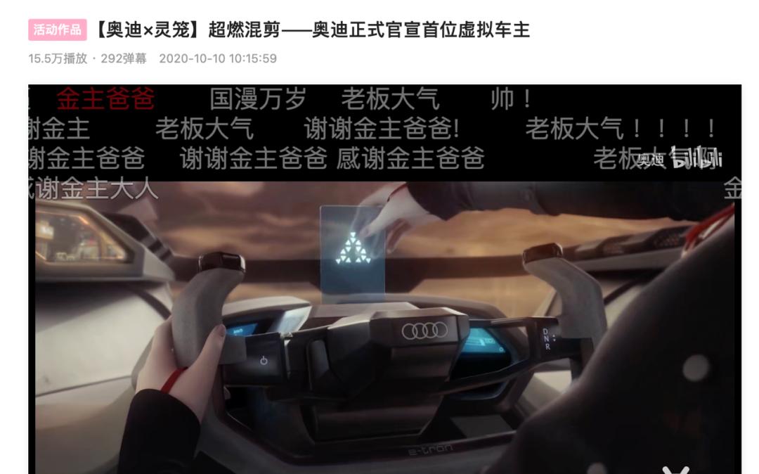 车企在年轻人的阵地中不断渗透,指望用Z世代的话语体系重塑品牌理念,进行破圈。“本来以为奥迪这牌子很商务、很土的,但在这部国漫里还挺酷的,然后就开始关注奥迪了”一位00后网友在热门动画《灵笼》的弹幕评论中写道。在这部由奥迪赞助的国漫中,奥迪基于其自家产品的汽车设计,为《灵笼》主角团定制了一辆hero car,还在剧集中秀了一下自动驾驶技术,刷新了不少年轻用户对奥迪的认知。更重要的是,不少年轻网友大赞奥迪对国漫的支持,看到汽车品牌有着同样的热爱,亲力亲为推动国漫崛起,增加了不少品牌好感度。
