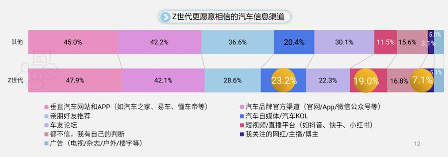 在UCG内容为主的社群氛围下,诞生了不少自愿“为品牌代言”的KOC,他们能更近距离地与品牌接触,影响其他车友,甚至成为舆论爆点。据去年OPPO与J.D.POWER联合发布的《2020中国Z世代购车倾向调查》数据显示,Z世代获取汽车信息的主要渠道,正逐渐从熟人圈子和传统的车友交流,转移至通过短视频/直播平台等互动社交平台,对Z世代购车有影响力的人群,也逐渐扩展至专业程度高、个人魅力大的平民意见领袖与草根博主。