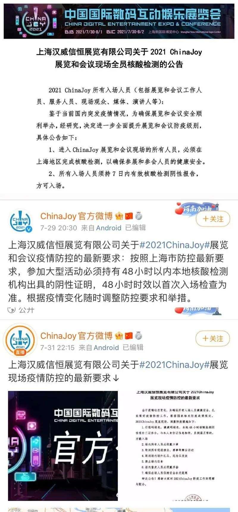 而随着其他地方疫情的动态变化,7月31日晚,除了48小时内核酸检测证明,ChinaJoy的防控措施再次调整,现场演出、抽奖等所有可能引发排队、聚集的活动均被取消。对于大部分玩家来说,这也意味着周边福利、舞台表演、明星主播互动、特殊活动等一项项参展理由都被一并取消掉了。