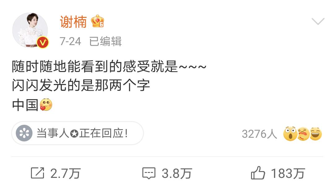 用吴京老婆谢楠老师还发微博cue了一下随时随地能看到中国,也不知道是不是在跟网友一起玩梗。
