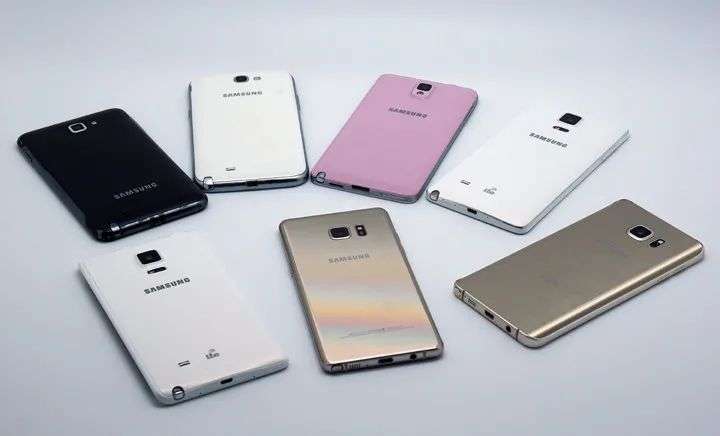 三星 Galaxy Note 系列(1 代到 7 代)。图片来自:axiang.cc