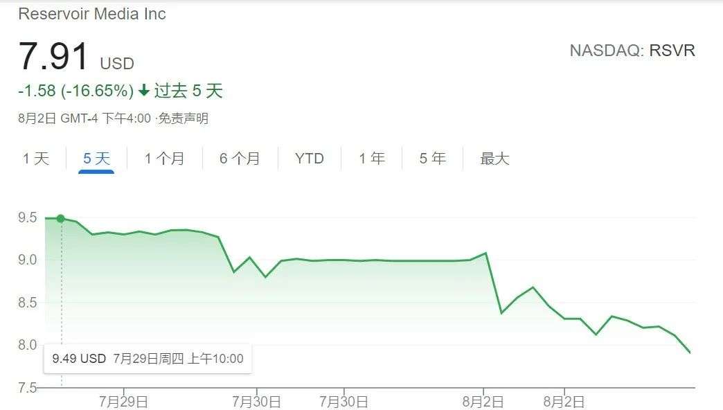 7月29日,Reservoir在纳斯达克上市,第一天开盘价为9.38美元,收盘价为9.03美元。