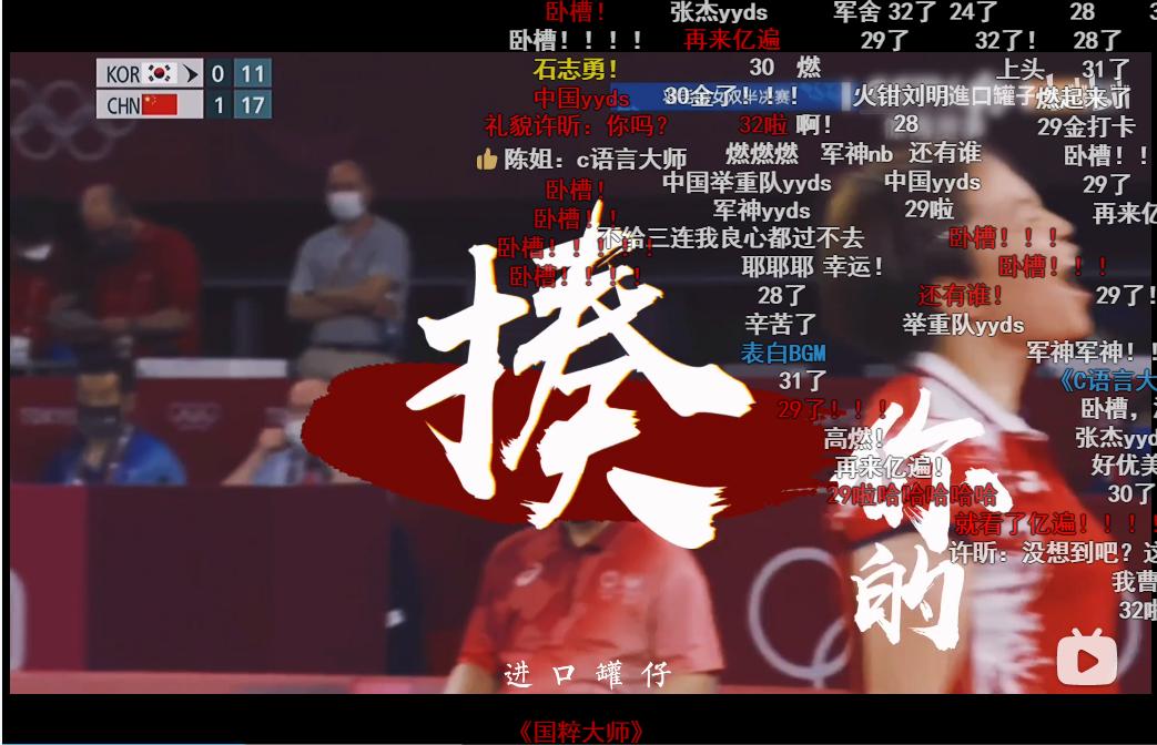 UP主“进口罐子”上传作品《中国代表团:我是来揍你的|高燃踩点》,将东京奥运赛场上的高燃瞬间混剪在一起,弹幕直呼“燃起来了”。截至目前播放量达到154.7万,最高热度排名位于B站第17。
