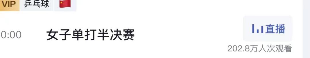 据咪咕视频数据显示,7月29日,伊藤美诚与孙颖莎的女乒单打半决赛观看人数至少达到202.8万。