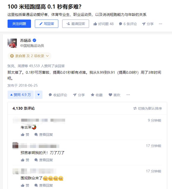 值得一提的是,当苏炳添在奥运赛场上重新定义“亚洲速度”后,不少网友前往苏炳添2018年的知乎回答观光打卡。