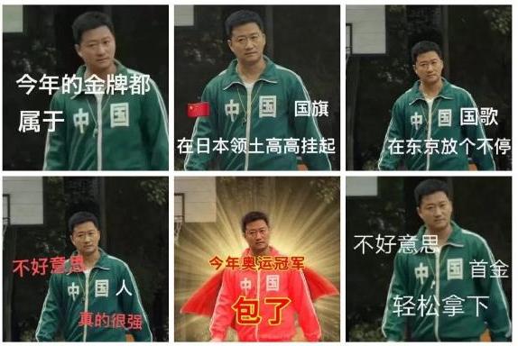 穿着印有中国两个大字的吴京照片,成为了各大网友们创作表情包的素材,铺天盖地出现在各大奥运相关微博的评论区。连吴京的老婆谢楠都直呼“随时随地能看到的感受就是,那两个闪闪发光的字:中国。”
