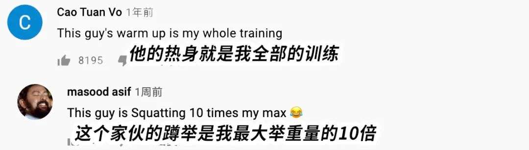 视频中,当吕小军大吼一声、一把举起270公斤的杠铃时,外国网友纷纷折服:“他的热身就已经是我一天的训练量。”“这个家伙举起了我最大举重量的10倍!”