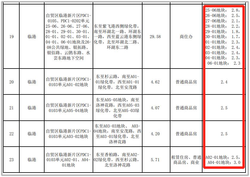 这次临港地块的容积率,有点醒目,住宅的容积率平均在2.4-2.5。