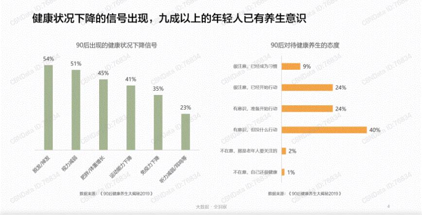 在啤酒加枸杞、可乐配党参的“朋克养生”方式下,年轻人的健康意识已然全面觉醒,并且正孕育出一个千亿级别的新市场。根据CBNData发布的《年轻人养生消费趋势报告》显示,九成以上90后已具备养生意识,且超半数90后正走在养生路上。根据中商产业研究院数据预测,2022年功能性食品市场规模将突破6000亿元。