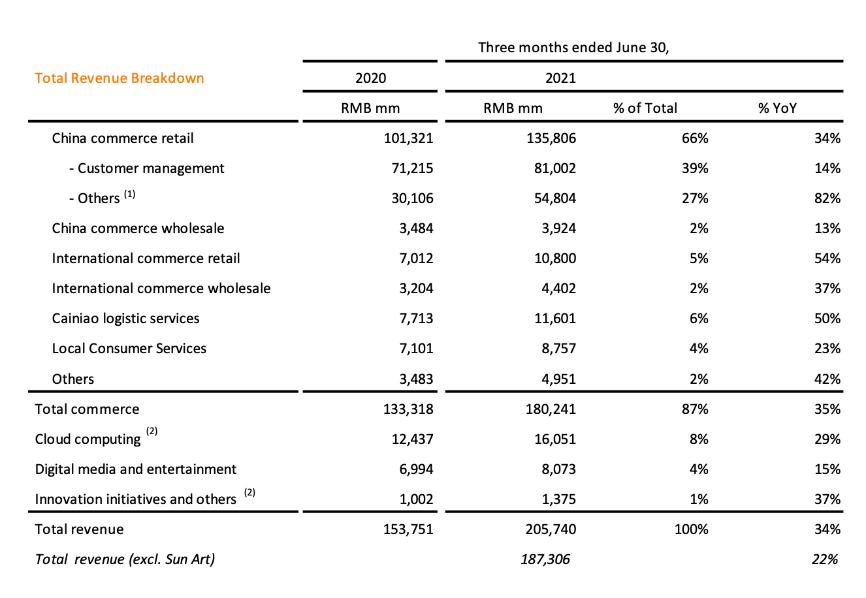 如果聚焦具体业务,可以看到这次财报的增长主要还是来自核心电商(Totalcommerce)部分,收入为1802亿元,同比增长35%,占总收入的85%。