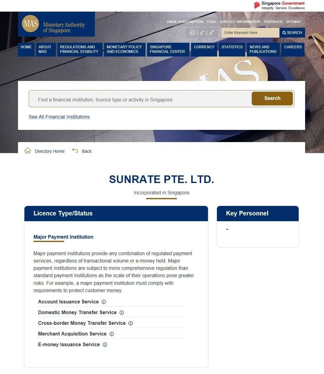 近日,寻汇SUNRATE正式被新加坡金融管理局(以下简称MAS)授予大型支付机构牌照(Major Payment Institution,简称MPI)),这是继去年获得印尼央行颁发的支付牌照后,寻汇SUNRATE全球业务拓展的又一重大里程碑!