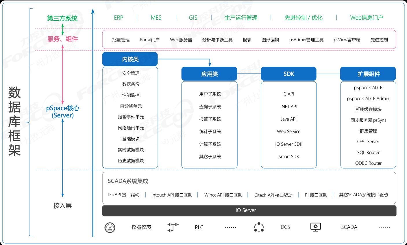 企业级实时历史数据库-pSpaceX,支持跨平台使用,有着灵活的分布式软件架构,完整的冗余技术,具有稳定性和安全性,条理清晰的层次化测点结构,优越的数据库性能,高效的压缩模式,强大的计算引擎,丰富的数据处理功能集,全面开发的接口,并且含有pSpace同步工具。单机支持的最大测点规模为300万测点,支持数据吞吐量30万条/秒,数据访问能力为15万条/秒。