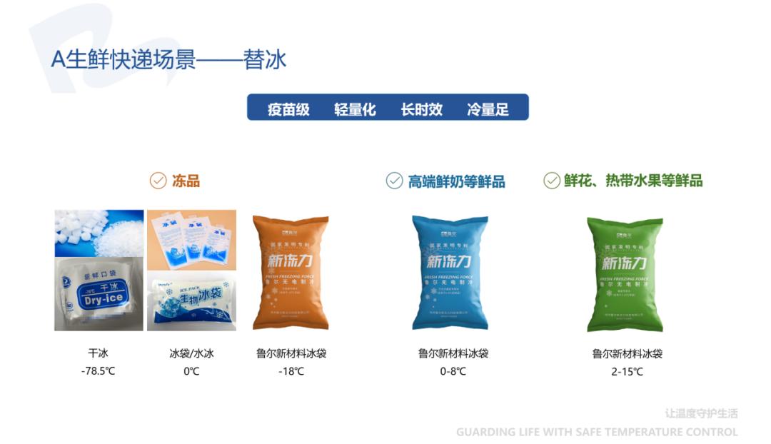 除此以外,在同城配送、零担快运等场景中,鲁尔新材可为客户提供切实有效、降本增效的冷链包材产品与解决方案。