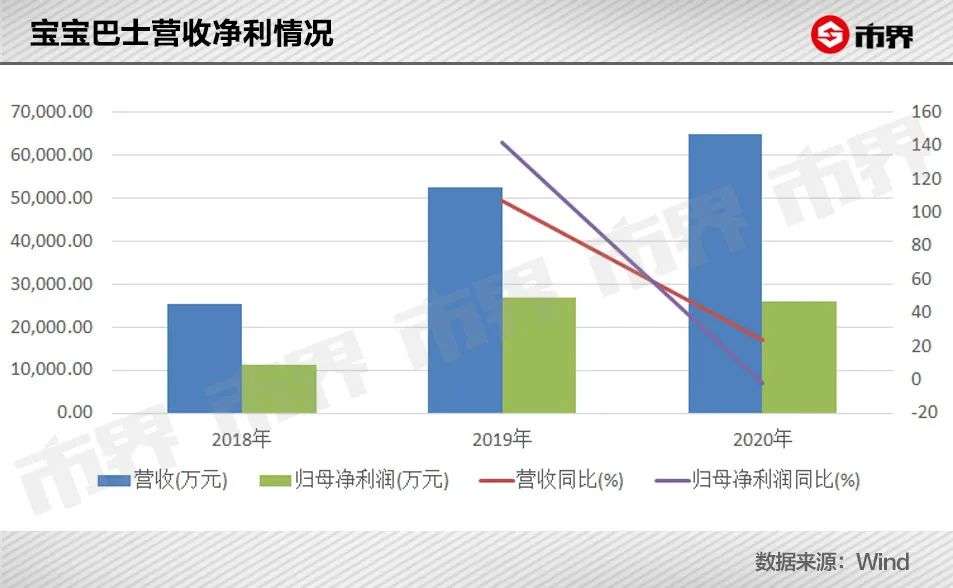 根据招股书,2018-2020年度,宝宝巴士的营收分别为2.54亿、5.26亿和6.49亿元,净利润分别为1.11亿、2.67亿和2.61亿元,三年合计净利6.39亿元。