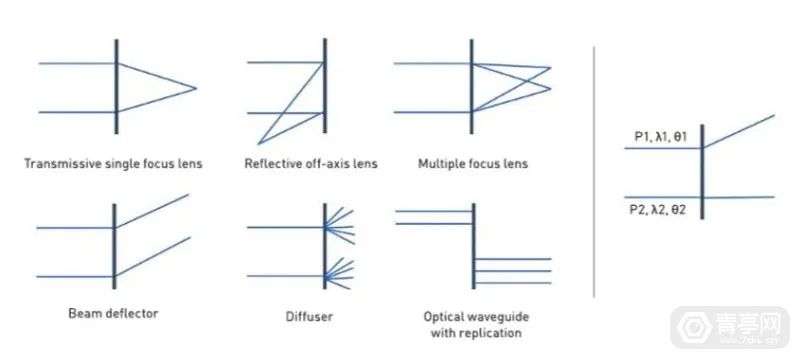 传统的全息技术基于光线调节原理,而偏振全息(又叫几何相位全息、圆形衍射波片)则依靠两个或以上光束的偏振调节。与HOE(全息光学元件)相似,偏振全息模组(PH)支持多种不同的角度和光谱带宽,而且外观设计足够轻薄。因此,PH可以充当镜面、透镜、光栅、光波导、透镜阵列、漫射器甚至非彩色或彩色的光学器件。总之,PH的偏振灵敏度为光学系统的设计带来更多灵活性,这对于AR/VR等应用场景足够关键。