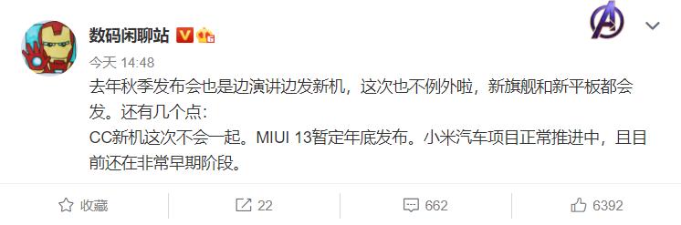现在看来,发布时应该是搭载MIUI 12.5,毕竟MIUI 13得等到年底了。