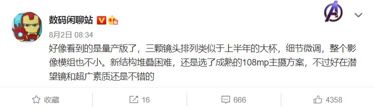 爆料称,由于新结构堆叠困难,MIX4最终用了成熟的108M主摄方案。