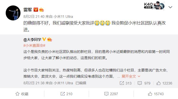 不少米粉都感觉自己被耍了,跑到相关微博底下宣泄情绪,雷军都给整得亲自下场道歉了。