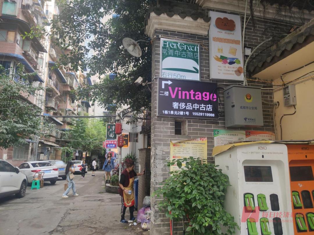 线下,在成都太古里商圈外短短的几百米街道上,就能看到扎堆的中古店、二奢店。