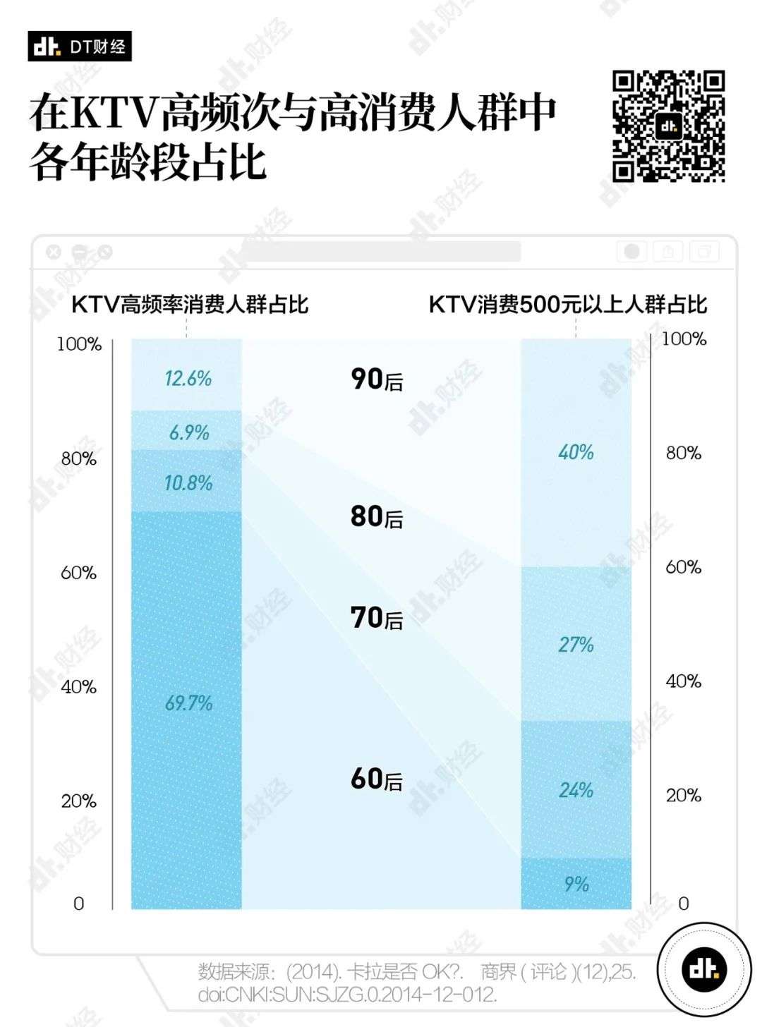 《商界》在2014年刊登了一份关于KTV消费的调研报告。报告数据显示,从消费能力来看,去KTV的90后会花更多的钱,占据了KTV消费500元以上人群的4成。但是,这些能为KTV贡献利润的顾客,数量并不多。