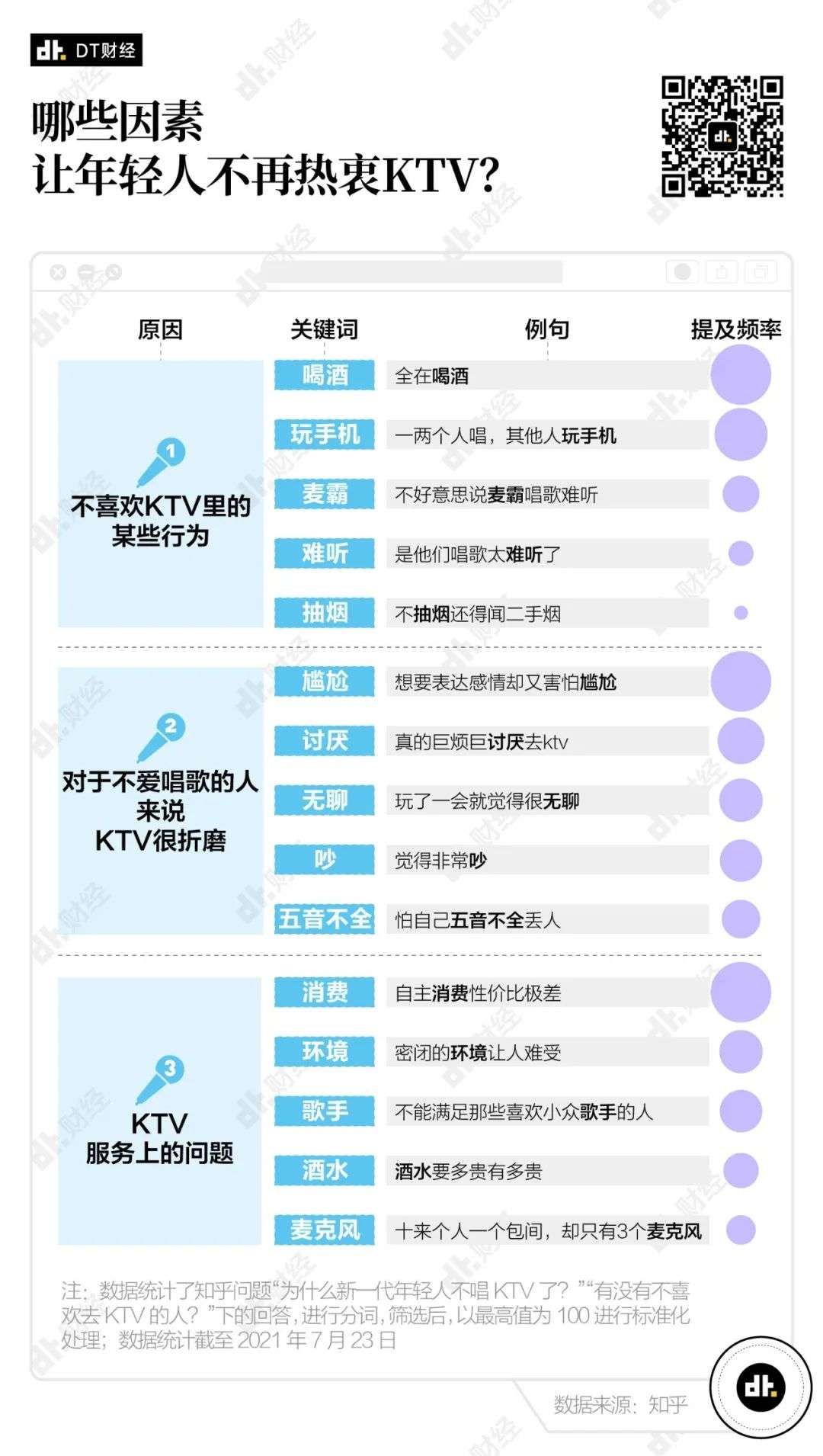 我们统计了知乎问题“为什么新一代年轻人不唱KTV了?”“有没有不喜欢去KTV的人?”问题下的答案,总结了一些主要的原因。