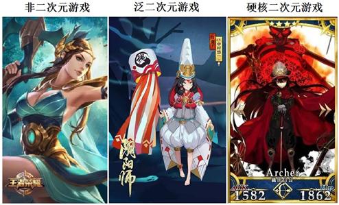 《王者荣耀》显然不属于二次元文化,没有任何人将其定义为“二次元游戏”。虽然这款游戏的画风和人设似乎参照了某些动漫作品,但是这种参照的程度很小。虽然在漫展上时常可见对《王者荣耀》的Cosplay,但这种Cos从来没有被硬核二次元圈子接受。腾讯也从来没有试图将《王者荣耀》纳入二次元文化体系。然而,《王者荣耀》的用户和收入规模都是三款游戏里最大的。