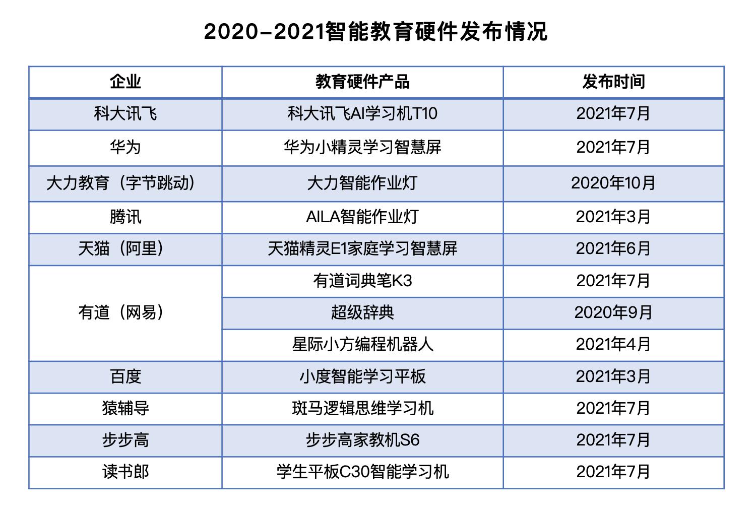 目前,卡位智能教育硬件领域的主要有:字节旗下大力教育、华为、阿里、腾讯、百度、网易有道和科大讯飞等。除了互联网巨头,诸如步步高、读书郎等老牌教育硬件企业也在数字化转型,抢夺市场。