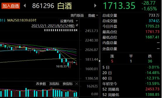 然后就是最近的7月以来这波调整,截止到8月5日收盘,白酒连续杀跌18%。