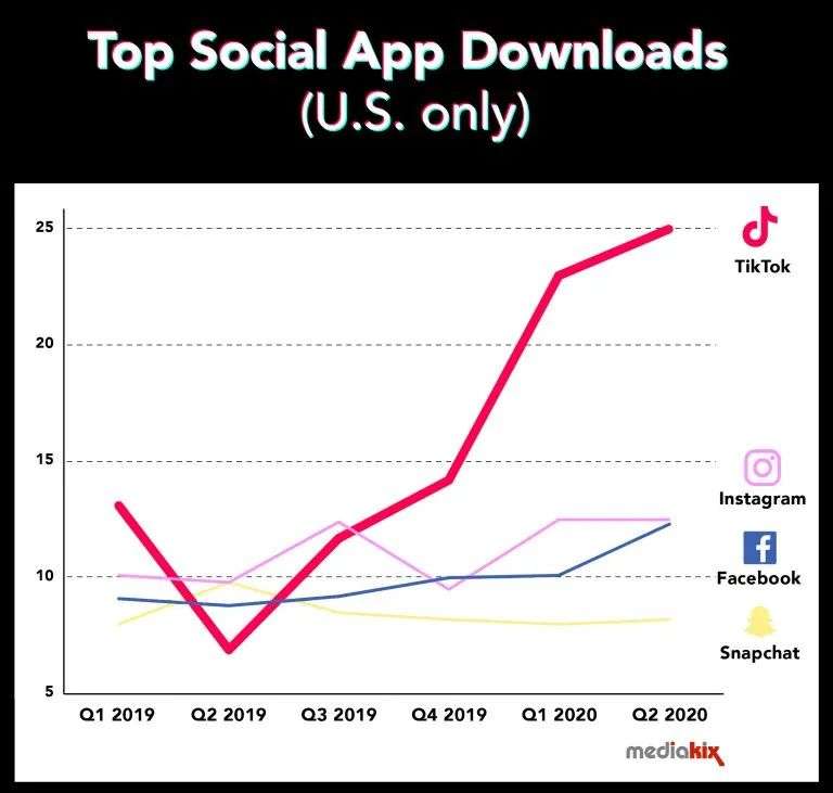短短几年间,TikTok已经成为了Instagram最大的竞争对手,也成为了扎克伯格眼中的最大威胁。这个由中国公司打造的短视频应用凭借着新颖有趣的的个性化功能、人工智能的推荐算法吸引了全世界的年轻用户。从2018年1月到2020年8月到两年半时间,TikTok用户基数飙升了八倍。