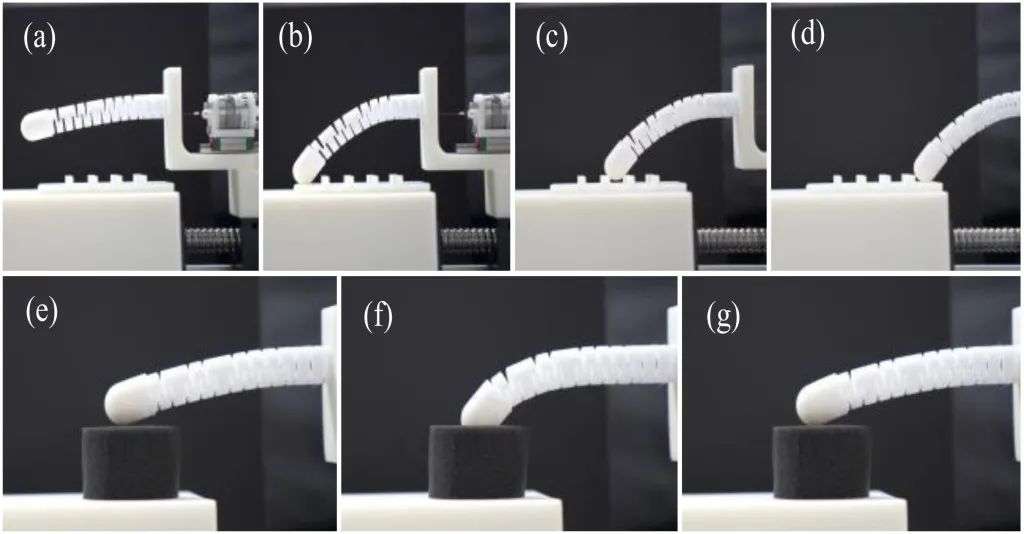 北航的这个研究团队创建的机器手原型系统由线性执行器(linear actuator)、肌腱/电缆(tendon/cable)、应变传感器(strain sensor)和一个软体机器人手指组成,另外还有一个用聚氨酯制成的套子套在在手指的末端,以模仿人的指尖。