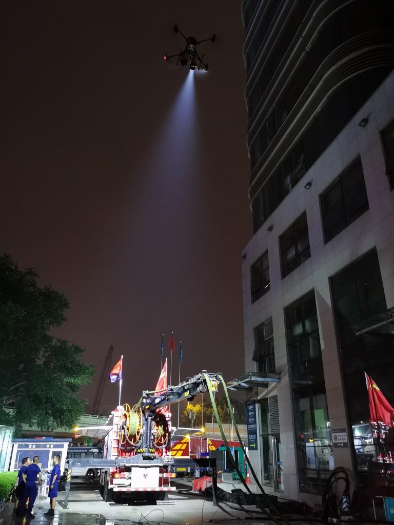 比如,郑州阜外医院、卫辉新医一附院病患转移,以及堵决口这样的场景,都需要持续的照明。在缺电的洪涝灾害现场,地面的设备很难抵近,无人机这样的轻量化高效照明装备正好可以救场,不但便于携带,而且使用无人机系留照明可以实现对周边的光源覆盖,比起地面的平视光源更加有效。