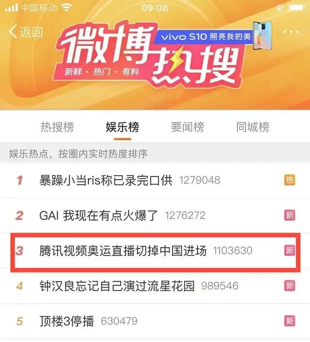 当时有诸多网友,或是出于腾讯视频是本届奥运官方转播商原因,通过腾讯视频观看东京奥运会的开幕式直播,然而在直播进行到中国队出场前时,腾讯突然切换视频源,且此后并未恢复直播。