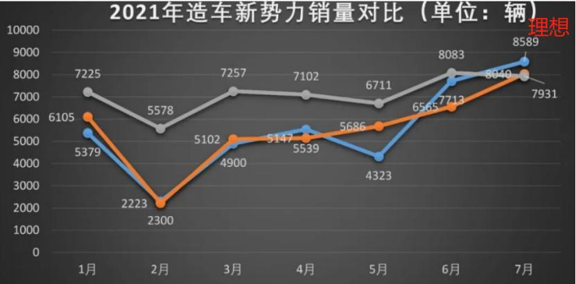 刚过去的7月,理想交付8589辆,坐上第一的宝座,小鹏交付了8040辆,排第二,而蔚来仅交付了7931辆,掉到了第三位。