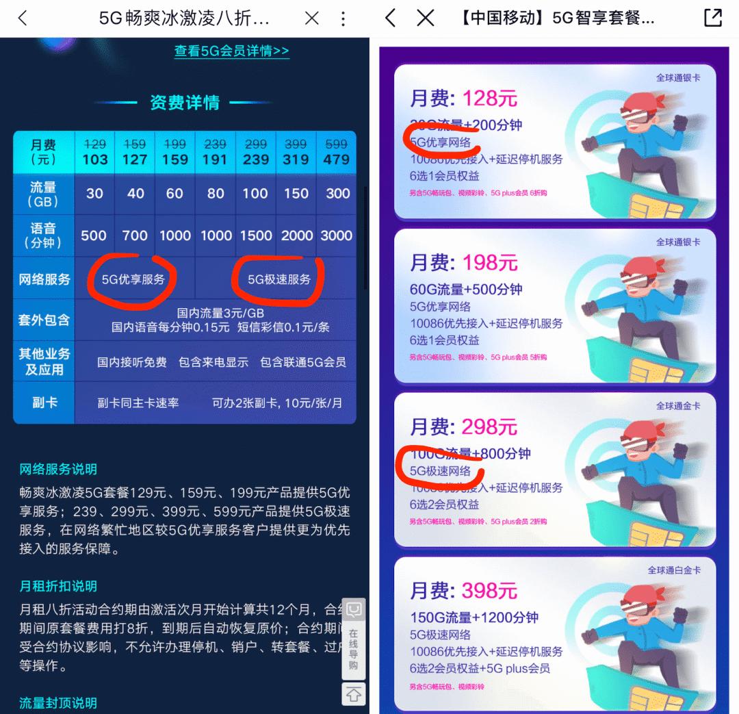 三是 5G 的高资费。4G 时代,运营商(尤其是联通)为了抢夺用户,推出了许多块大量足的互联网套餐,十几块、二十几块就可以畅享一个月的网络冲浪。