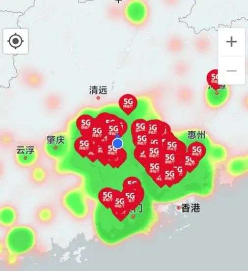 东部沿海的广东省 5G 信号都未能全面覆盖,多是集中在珠江三角洲的核心城区。