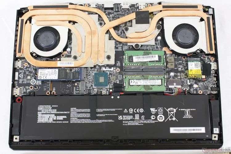 配置差不多,但能充分释放性能的微星GP66游戏本的散热设计,图片来自Notebook Check