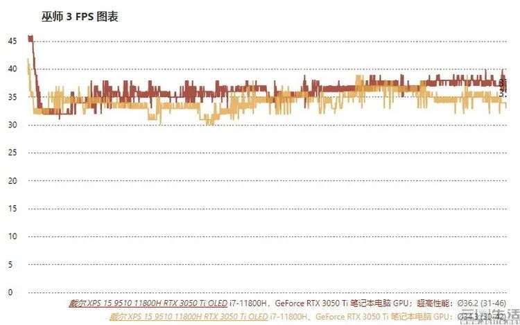 那么,到底是怎样的原因导致了用户感受到“性能不足”呢?为了探究其中的奥秘,Notebook Check日前进行了简单的测试。结果发现,顶配版XPS 15 9510(11800H+RTX3050Ti)在大型游戏当中的性能,的确比理论上要低了很多。