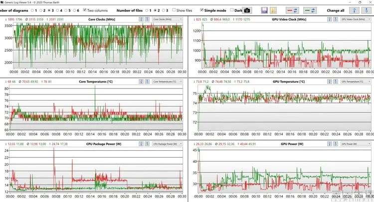 那么,戴尔的XPS 15 9510有没有达到提供“足额”的供电能力呢?至少从Notebook Check的实测结果来看是没有的。事实上,在高负载情况下,XPS 15 9510的CPU供电会降到只有20W左右,而GPU供电更是从一开始就被限制在了45W。如此一来,由于供电不足、再加上过热,降频和性能打折扣自然也就在所难免了。