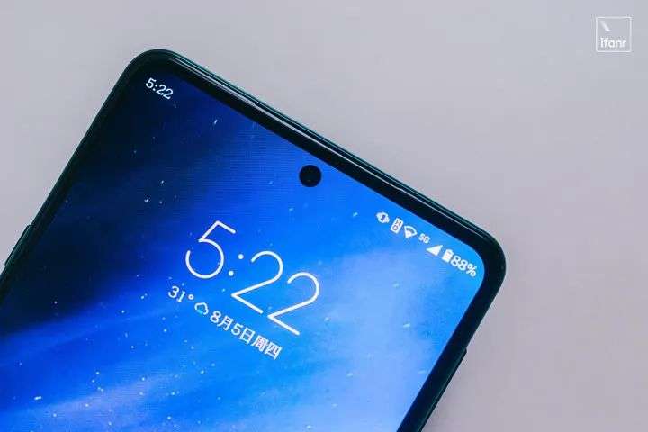 前置摄像头采用了中置挖孔,四边的边框也基本等宽,从正面看上去有一种视觉上的平衡美。