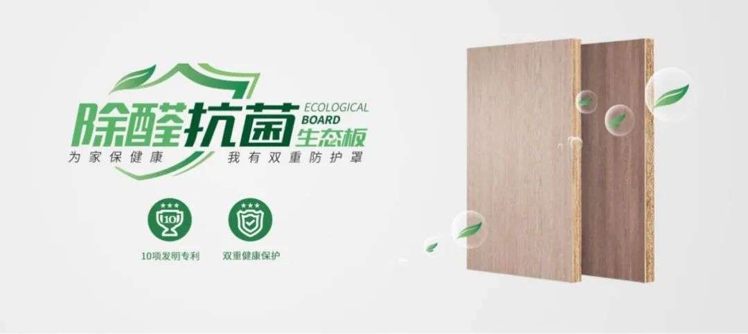 另一家家居板材上市公司兔宝宝,也推出了一款除醛黑科技——除醛抗菌生态板,介绍文字描述说,这款产品“具有360°彻底除醛与99%超强抗菌双重防护功能,可全面清除居室中的游离甲醛,对各类病原性细菌、霉菌有强大的灭活能力”。