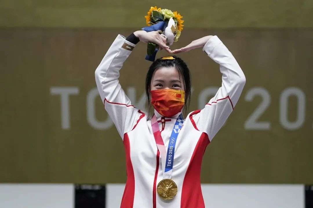 7月24日,在女子十米气步枪决赛中,杨倩以251.8环的成绩摘得下中国首金,也是本次东京奥运会首枚金牌。