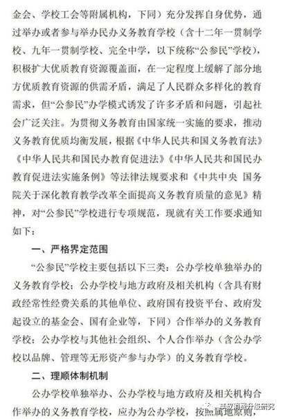 政策文件里面,第一部分就说了,本文主要针对的是“公参民”学校,即主要针对的,是由公办资源举办的义务教育学校,这部分确实存在问题,即民办学校本身具有筛选生源的手段,同时是企业利益相关方,如果民办学校占用公办资源,确实是不合理的。
